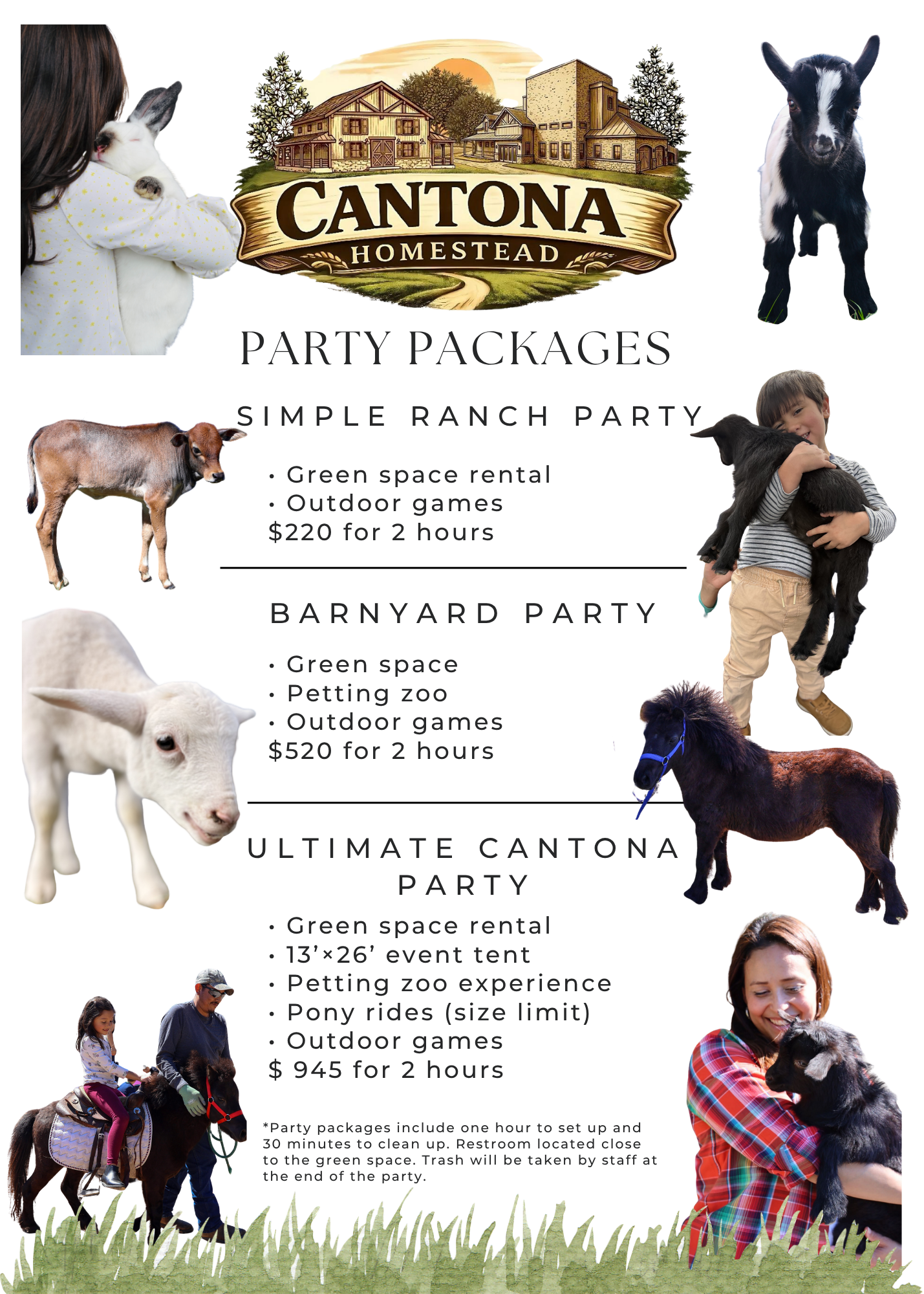 We’ve created our party packages to be flexible, so you can choose what works best for your family. Whether you want a simple outdoor gathering or a full ranch experience, Cantona Homestead makes it easy to celebrate.